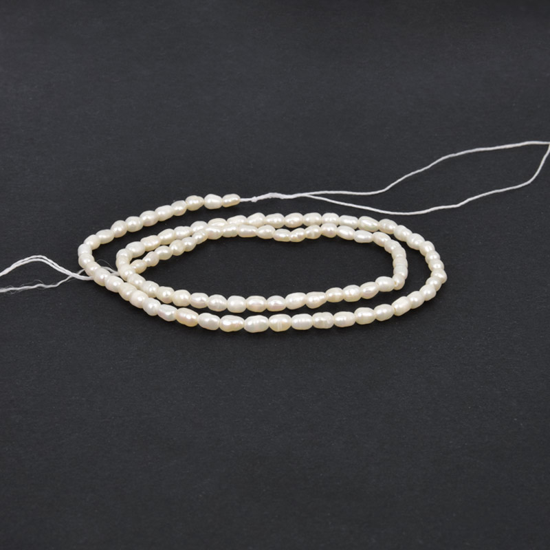 Бусины Жемчуг речной натуральный молочный, Рис, 3,5-4х5-6 мм (18 см) (BUS-053738)