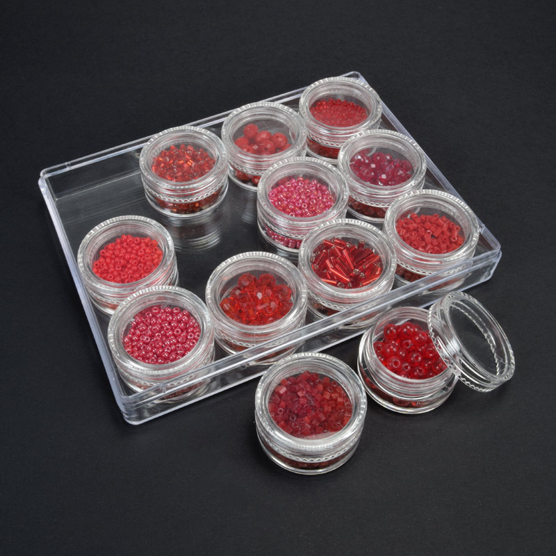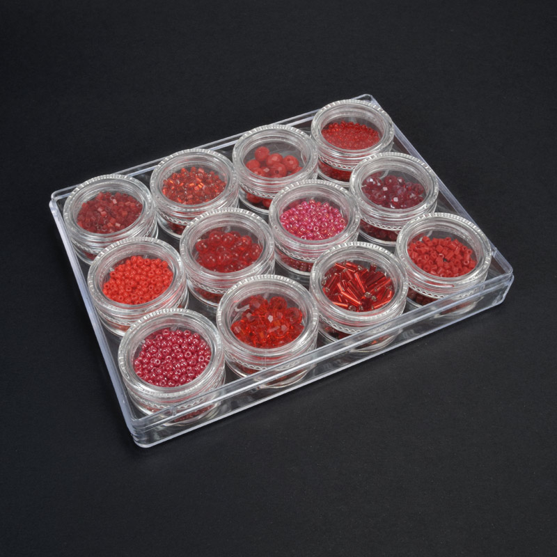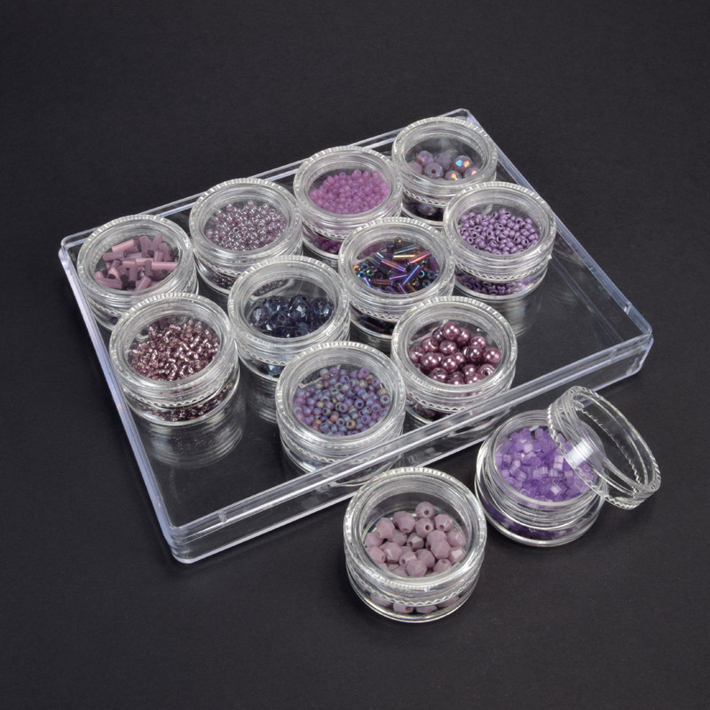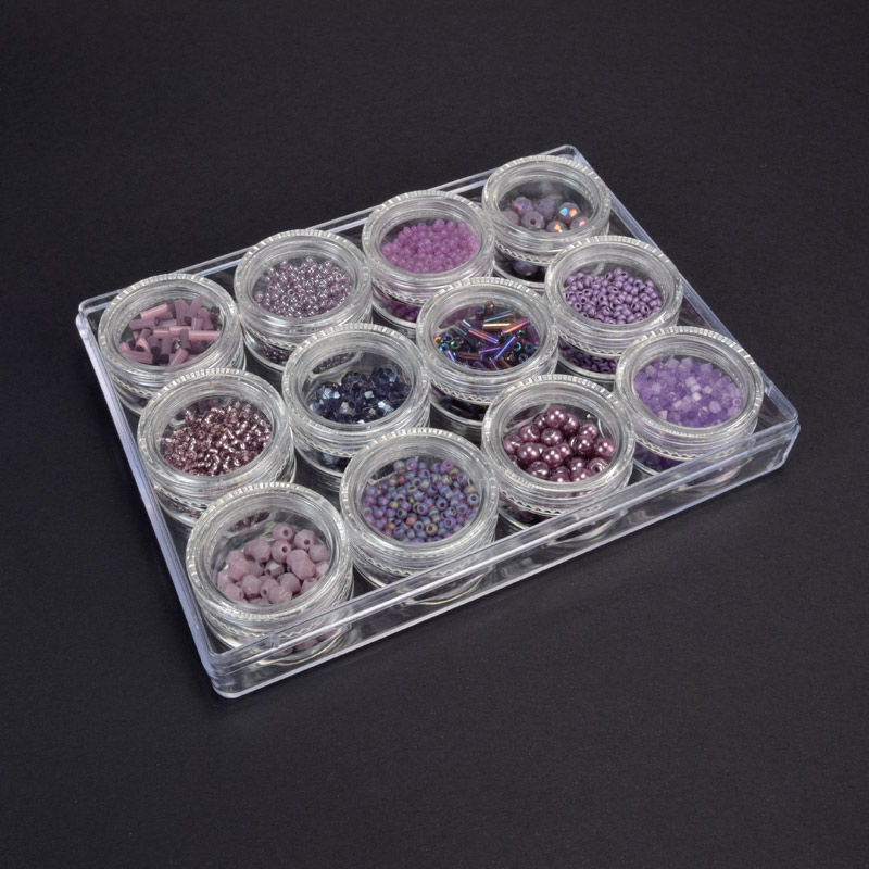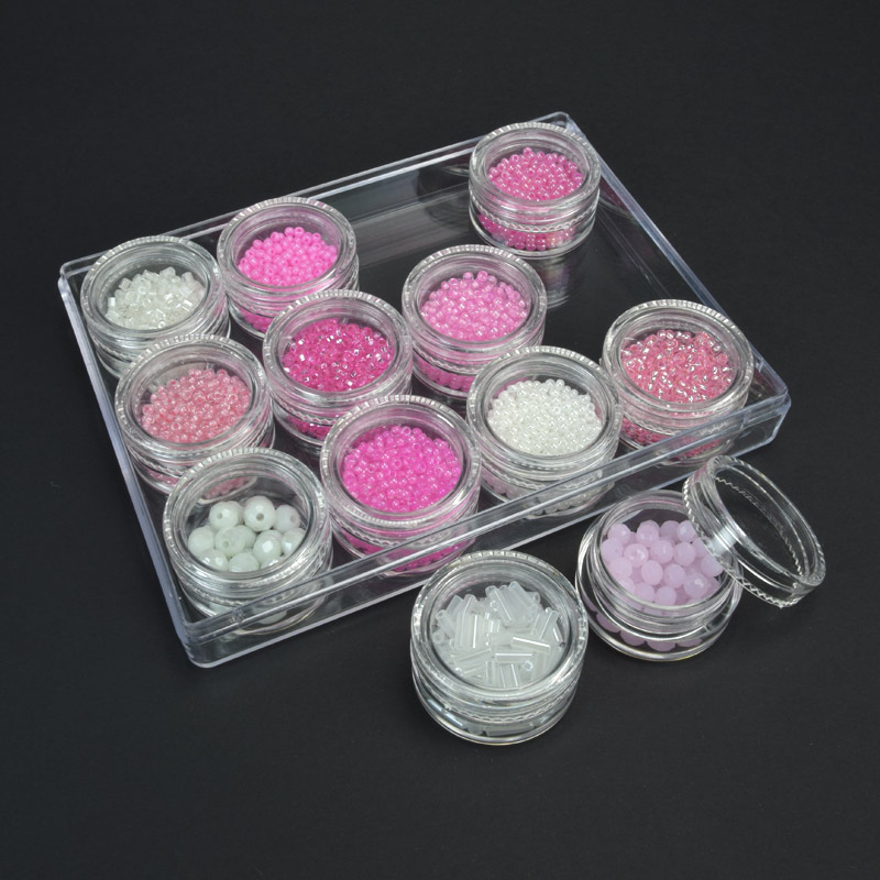 Набор пластиковых бусин в органайзере, 8-16 мм, Розовый (BUS-051100)