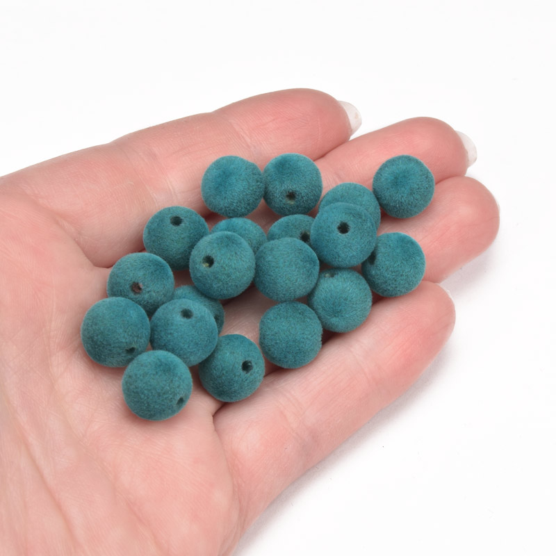Бусина бархатная, Круглая, 10 мм, Бирюзовая (BUS-060183)