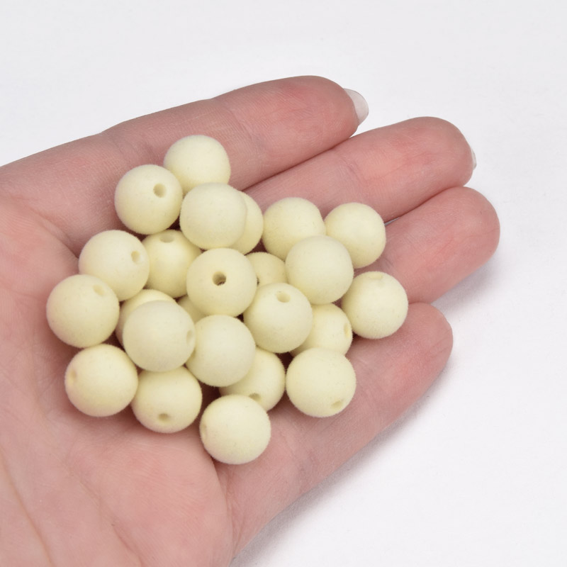 Бусина бархатная, Круглая, 10 мм, Кремовая (BUS-060189)