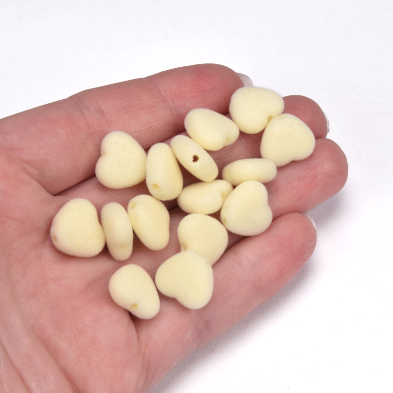 Бусина бархатная, Сердце, 12х11х5 мм, Кремовая (BUS-060181)