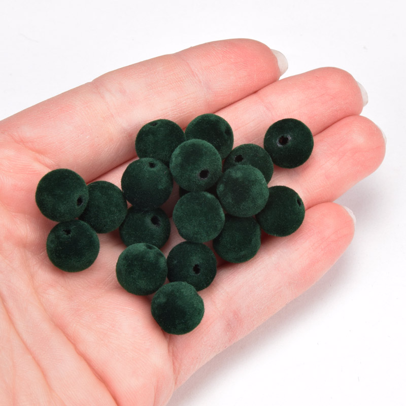 Бусина бархатная, Круглая, 10 мм, Изумрудная (BUS-060187)