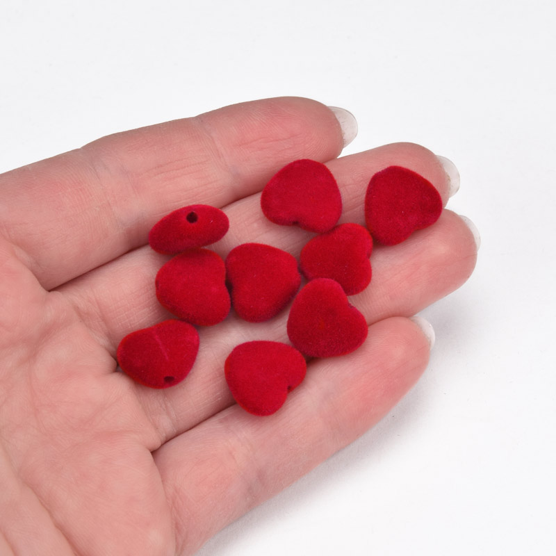 Бусина бархатная, Сердце, 12х11х5 мм, Красная (BUS-060180)