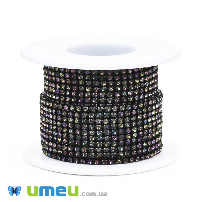 В катушке приблизительно 9 м.Стразовая цепь SS6 - 2,0 мм, Ирис зеленая, Стразы стеклянные ирис (ZEP-043005) / 1 мZEP-043005 Кратно 0.1 едДанный товар можно приобрести
