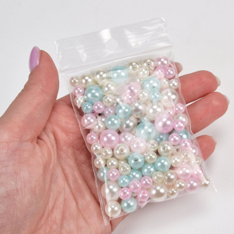В миксе бусины размером от 6 до 10 мм.Бусины пластиковые Круглые, Жемчуг, 6-10 мм, Микс разноцветный (BUS-059764) / 1 уп (25 г)BUS-05976429.00₴ / уп (25 г) -