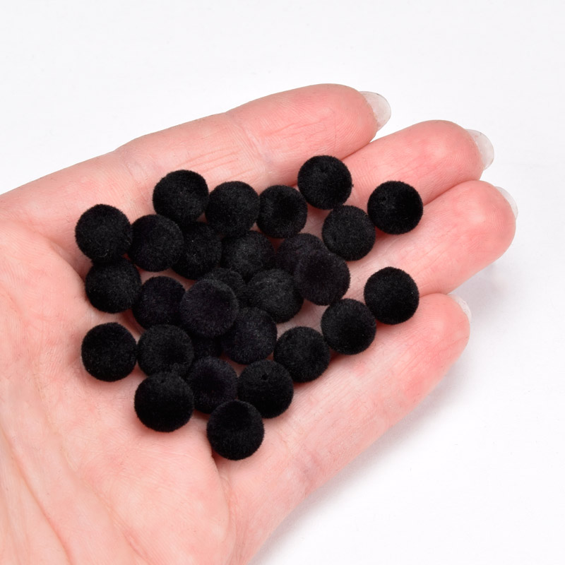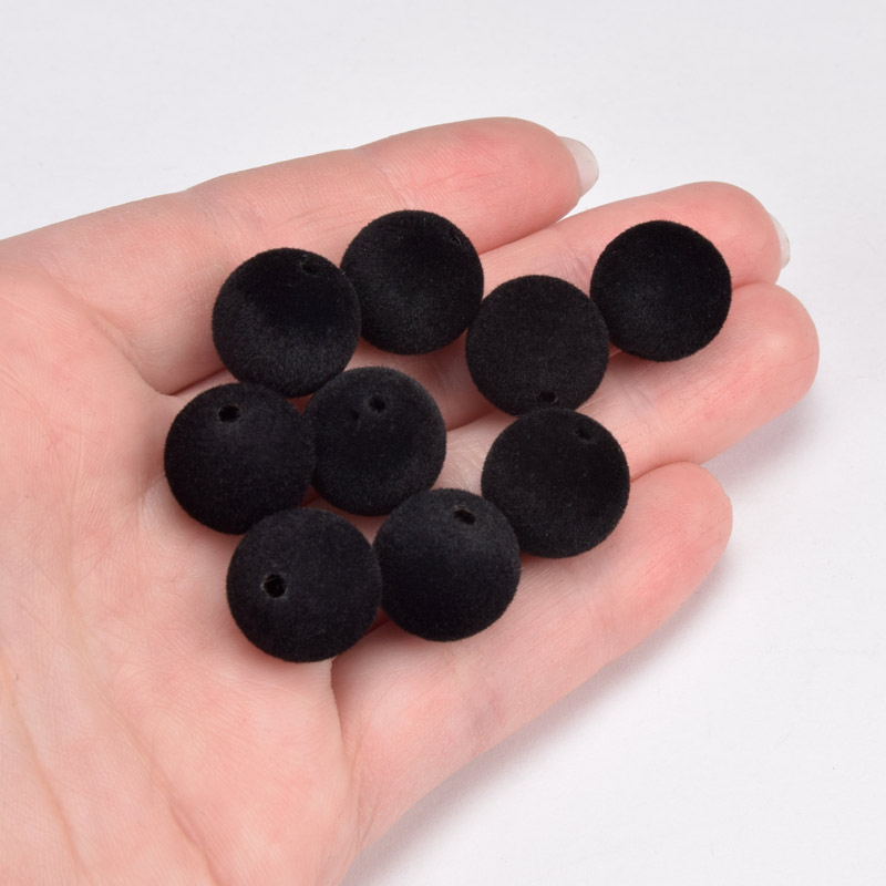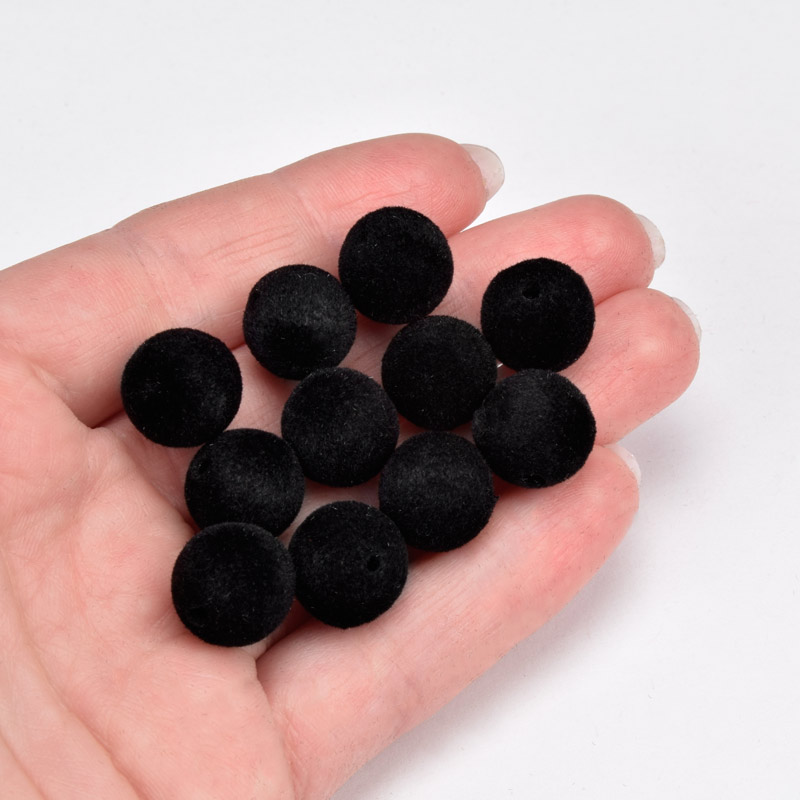 Бусины бархатные, Круглые, 12 мм, Черные (BUS-060179)