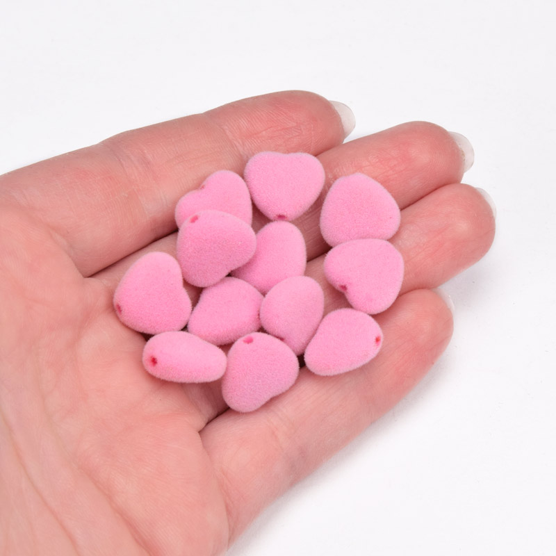 Бусина бархатная, Сердце, 12х11х5 мм, Розовая (BUS-060182)