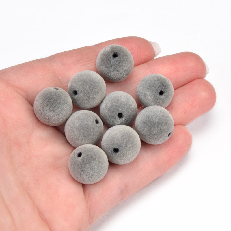 Бусина бархатная, Круглая, 14 мм, Серая (BUS-060192)