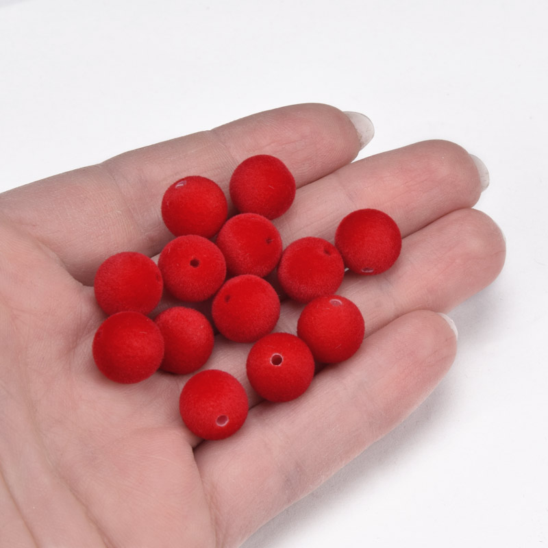 Бусина бархатная, Круглая, 16 мм, Красная (BUS-060193)