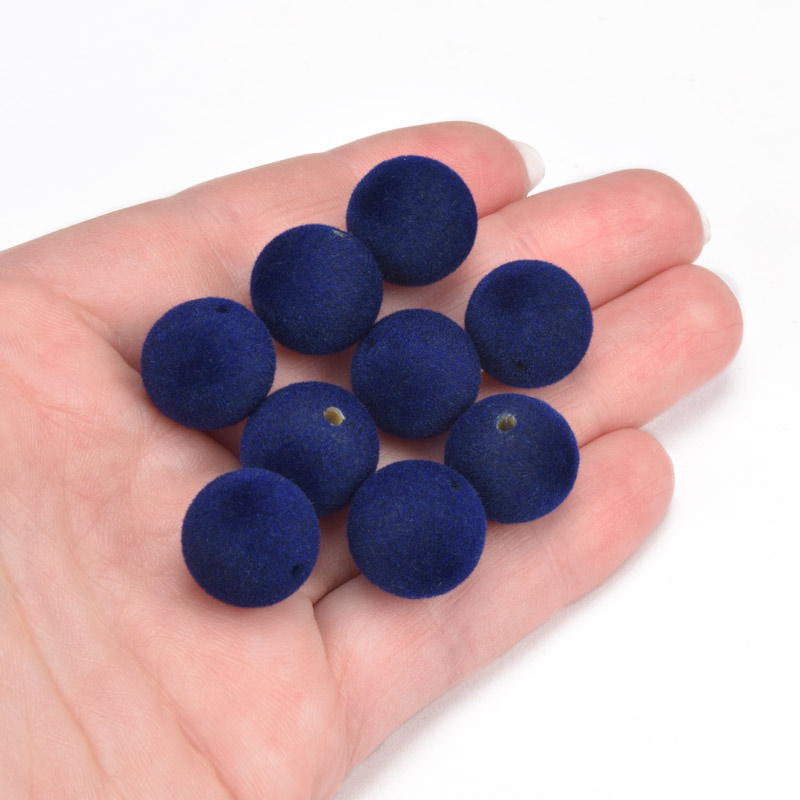 Бусина бархатная, Круглая, 14 мм, Синяя (BUS-060190)