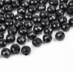 Бусины пластиковые, Круглые граненые, 6 мм, Черные (BUS-059958)В наличии