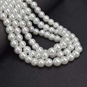 Бусины стеклянные Жемчуг, 10 мм, Белые, Круглые (BUS-052141) / 1 низкаBUS-05214149.00₴ / низка -