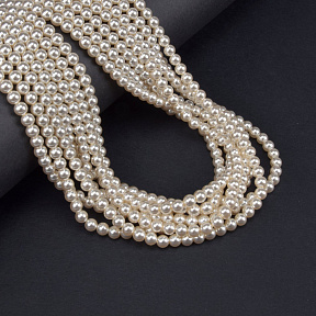 Бусины стеклянные Жемчуг Premium, 6 мм, Кремовые, Круглые (BUS-034122)