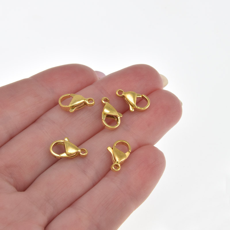 Замки-карабины из нержавеющей стали, 12х7 мм, Золото (STL-057074)