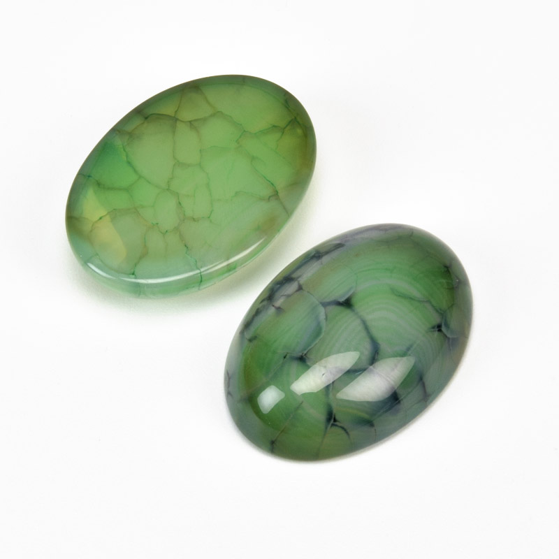 Кабошон нат. камень Агат Кракле зеленый, Овал, 25х18 мм (KAB-059211)