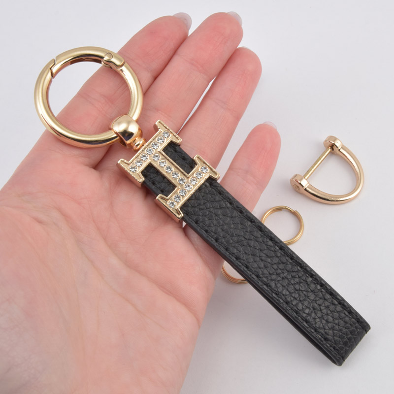 Брелок, 13х3,5 см, Черный, Искусственная кожа, Золото (OSN-058511)