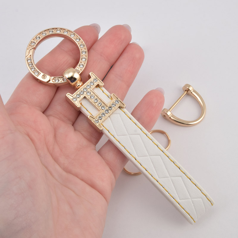 Брелок, 13х3 см, Белый, Натуральная кожа, Золото (OSN-058503)