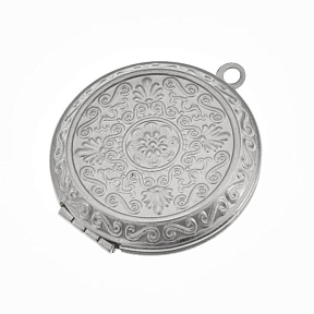 Медальон Круглый c узором из нержавеющей стали, 35х31х7,5 мм, Темное серебро (STL-061288)