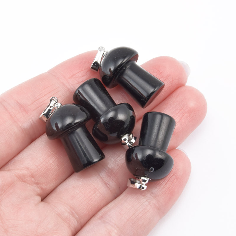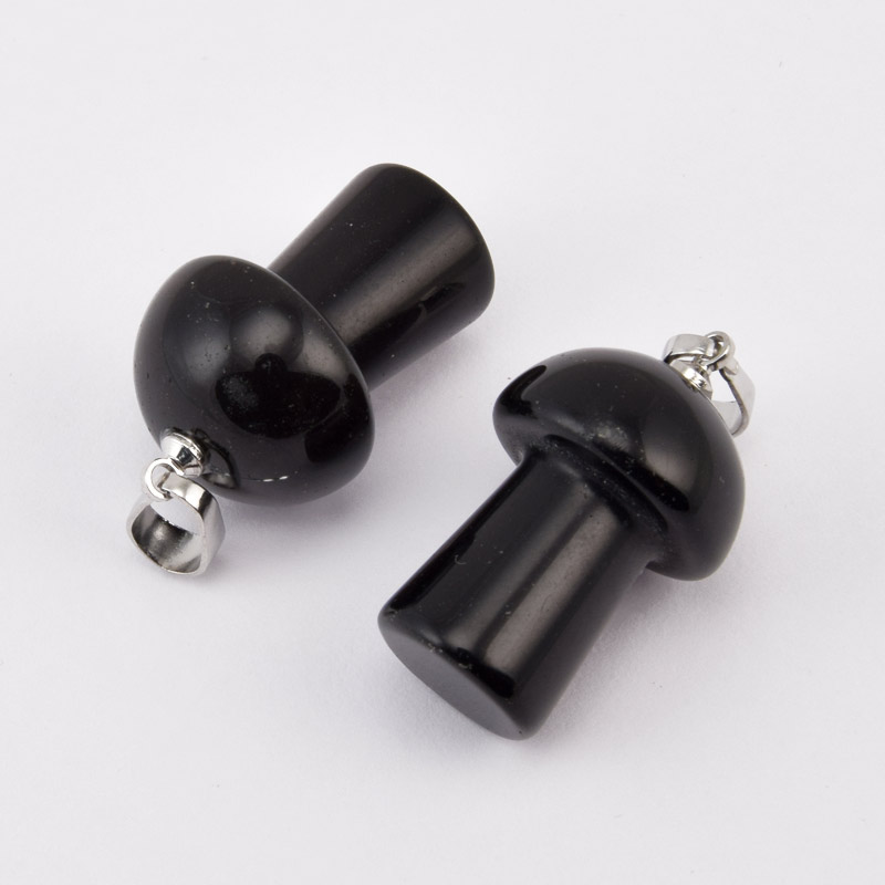 Подвеска Грибочек, Натур. камень Обсидиан черный, 25х15 мм (POD-058597)