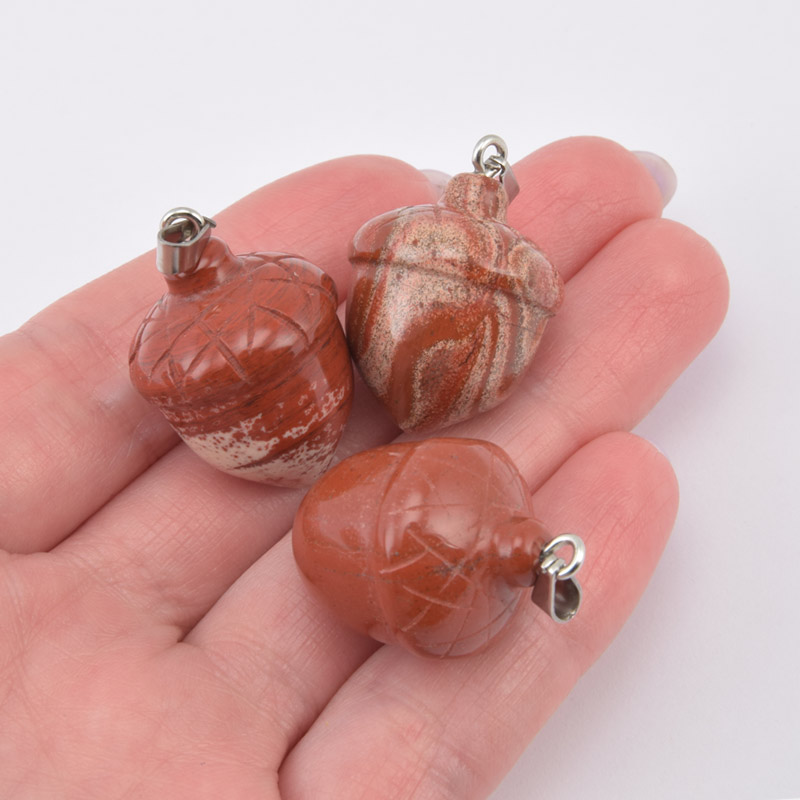 Подвеска Желудь, Натур. камень Яшма красная, 25х19 мм (POD-058593)