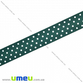 В мотке приблизительно 22 м.Репсовая лента в горошек, 10 мм, Зеленая темная (LEN-016660) / 1 мLEN-016660 Кратно 0.5 едДанный товар можно приобрести
