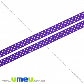 В мотке приблизительно 22 м.Репсовая лента в горошек, 10 мм, Фиолетовая (LEN-016659) / 1 мLEN-016659 Кратно 0.5 едДанный товар можно приобрести