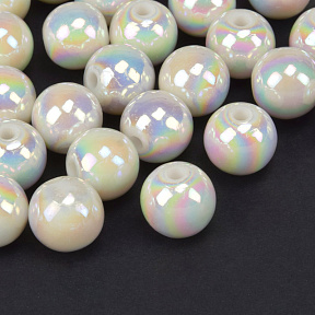 Бусины пластиковые радужные Круглые, 12 мм, Молочные (BUS-060796)