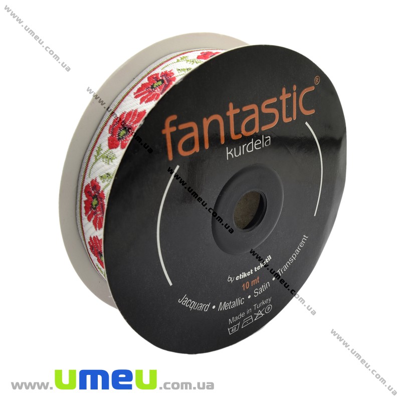 Тесьма Fantastic цветы маки, 25 мм, Красная (LEN-010948) / 1 м