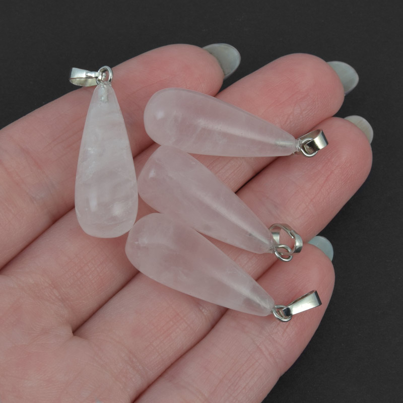 Подвеска Капля, Натур. камень Кварц розовый, 29х10 мм (POD-011986) / 1 шт
