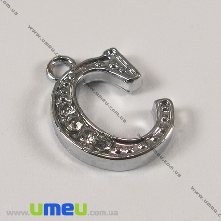 [Архив] Подвеска металлическая Буква со стразами C, Серебро, 15х10 мм (POD-001211) / 1 шт
