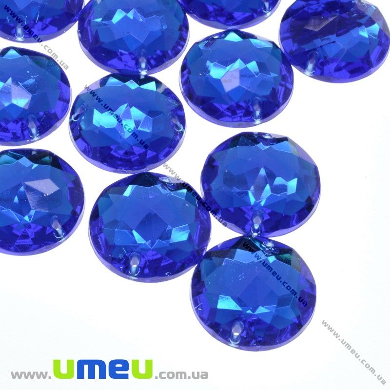 Пришивной кристалл пласт. Круглый граненый, 15 мм, Синий (KAB-012158) / 1 шт