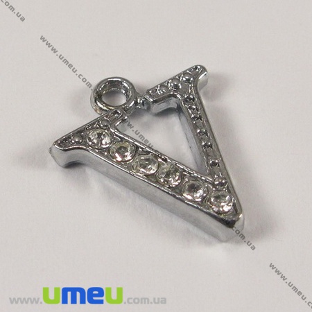 [Архив] Подвеска металлическая Буква со стразами V, Серебро, 15х12 мм (POD-001221) / 1 шт