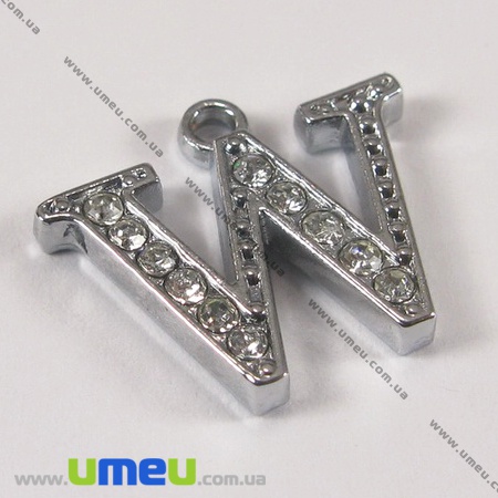 [Архив] Подвеска металлическая Буква со стразами W, Серебро, 15х17 мм (POD-001222) / 1 шт
