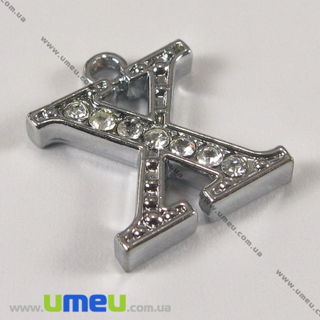 [Архив] Подвеска металлическая Буква со стразами X, Серебро, 15х12 мм (POD-001223) / 1 шт
