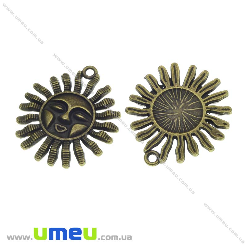 [Архив] Подвеска металлическая Солнце, Античная бронза, 33х29 мм (POD-001239) / 1 шт