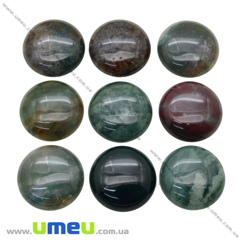 Кабошон нат. камень Агат моховый, Круглый, 25 мм (KAB-012645) / 1 шт