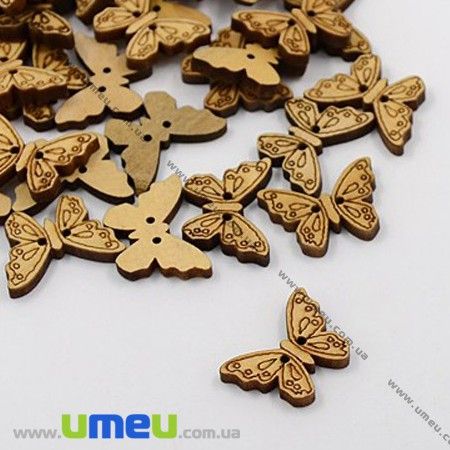 Пуговица деревянная Бабочка, 23х16 мм, Натуральное дерево (PUG-013045) / 1 шт