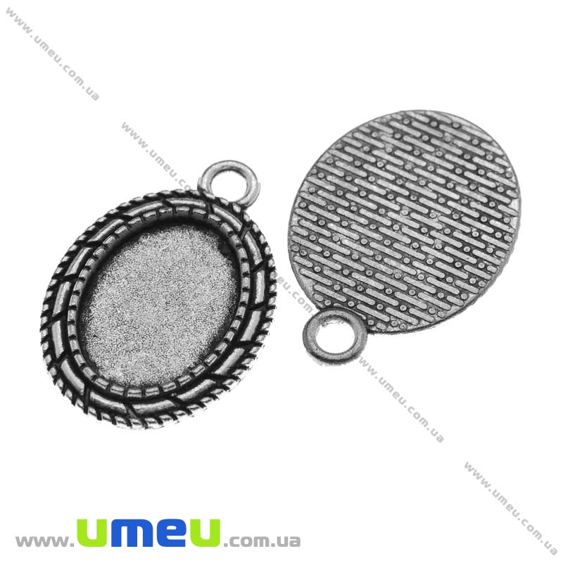 Основа овальная, 29х20 мм, 18х13 мм, Античное серебро (OSN-013499) / 1 шт