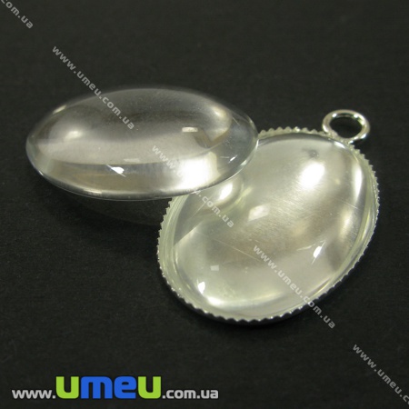 Кабошон стеклянный Линза овальная, 25х18 мм, Прозрачный (KAB-001410) / 1 шт