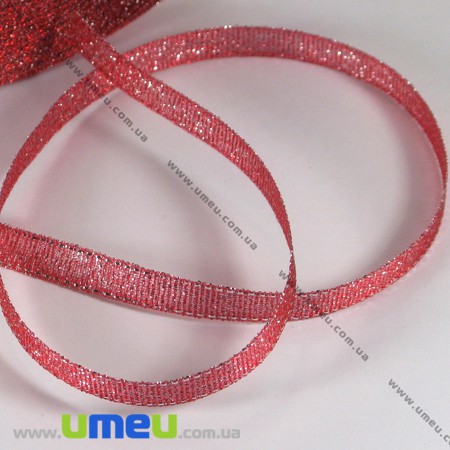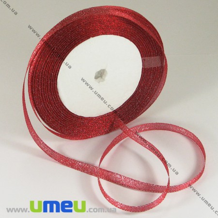 Лента парчовая, 6 мм, Красная с серебром (LEN-001545) /