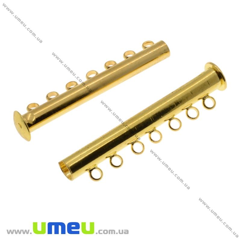[Архив] Магнитный замок-слайдер на 7 нитей, Золото, 40х10 мм (ZAM-016985) / 1 шт