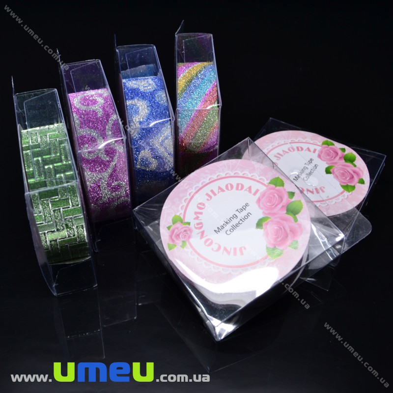 Декоративный скотч глиттерный в блистере, Зеленый, 15 мм (DIF-017930) / 1 катушка (4 м)