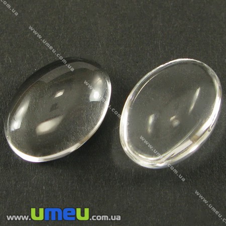 Кабошон стеклянный Линза овальная, 14х10 мм, Прозрачный (KAB-001829) / 1 шт