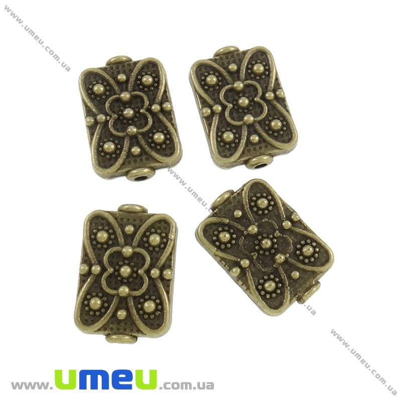 [Архив] Бусина мет. прямоугольная плоская, 18х12х5 мм, Античная бронза (BUS-018690) / 1 шт