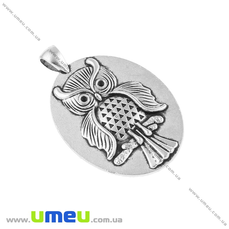 Основа овальная с совой, 51х33 мм, 40х30 мм, Античное серебро (OSN-020031) / 1 шт