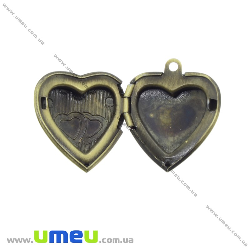 [Архив] Медальон Сердце, Античная бронза, 23х20 мм (POD-020111) / 1 шт