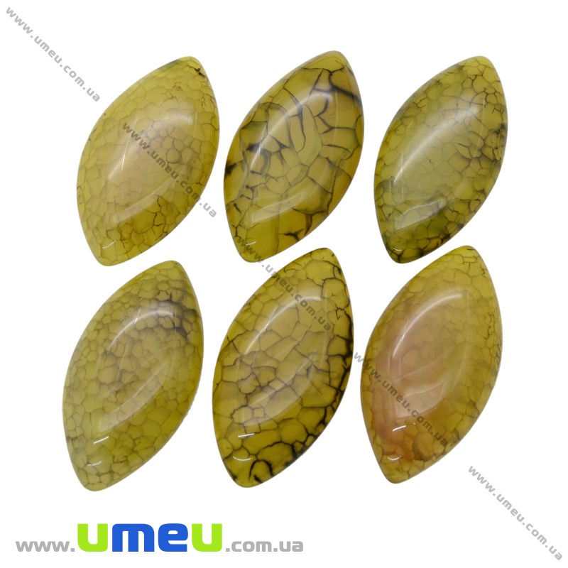 Кабошон нат. камень Агат Кракле желтый, Лодочка, 40х20 мм (KAB-020303) / 1 шт