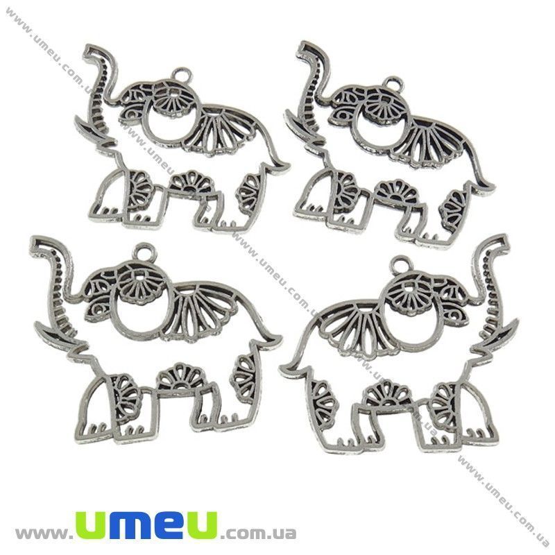 [Архив] Подвеска метал. Слон, 47х41 мм, Античное серебро (POD-021085) / 1 шт
