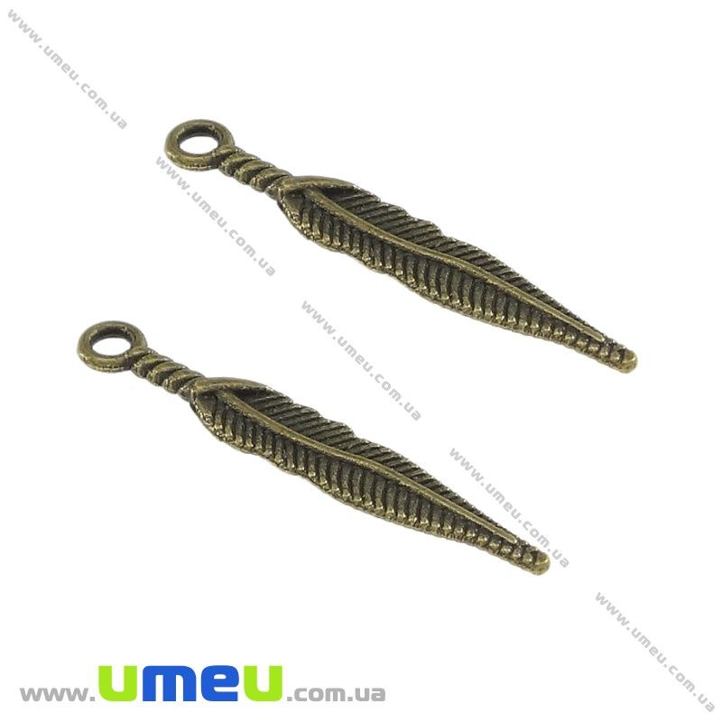 [Архив] Подвеска металлическая Перо (двухстор.), Античная бронза, 27х4 мм (POD-021099) / 1 шт