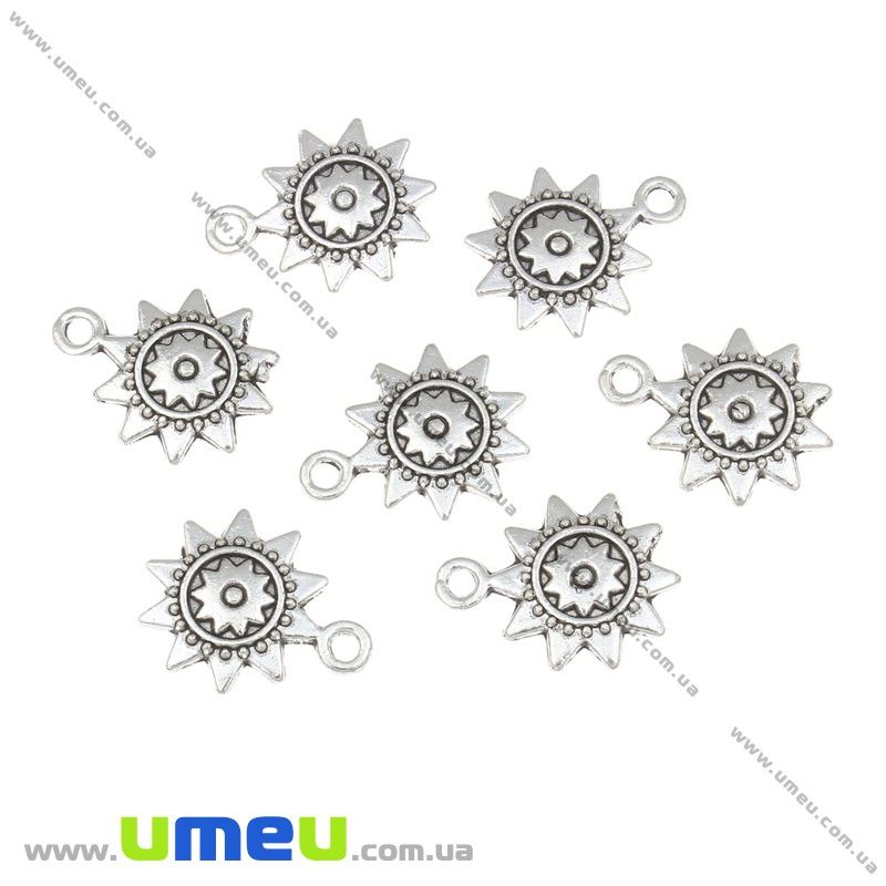 [Архив] Подвеска металлическая Солнышко (двухстор.), Античное серебро, 18х13 мм (POD-021110) / 1 шт
